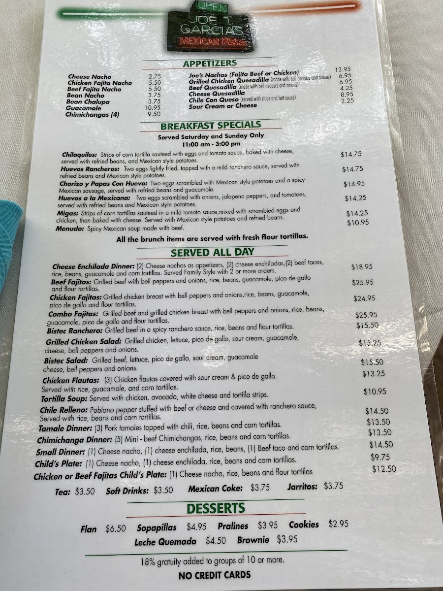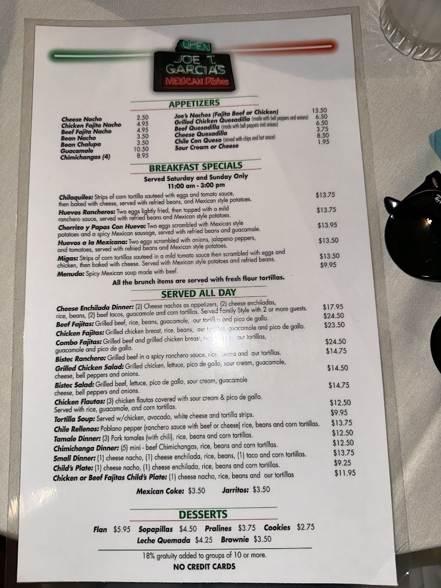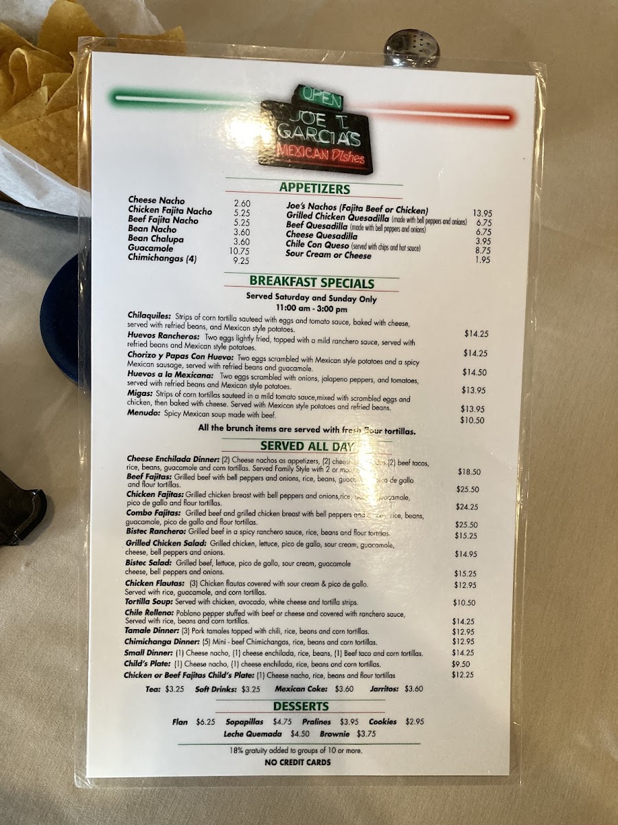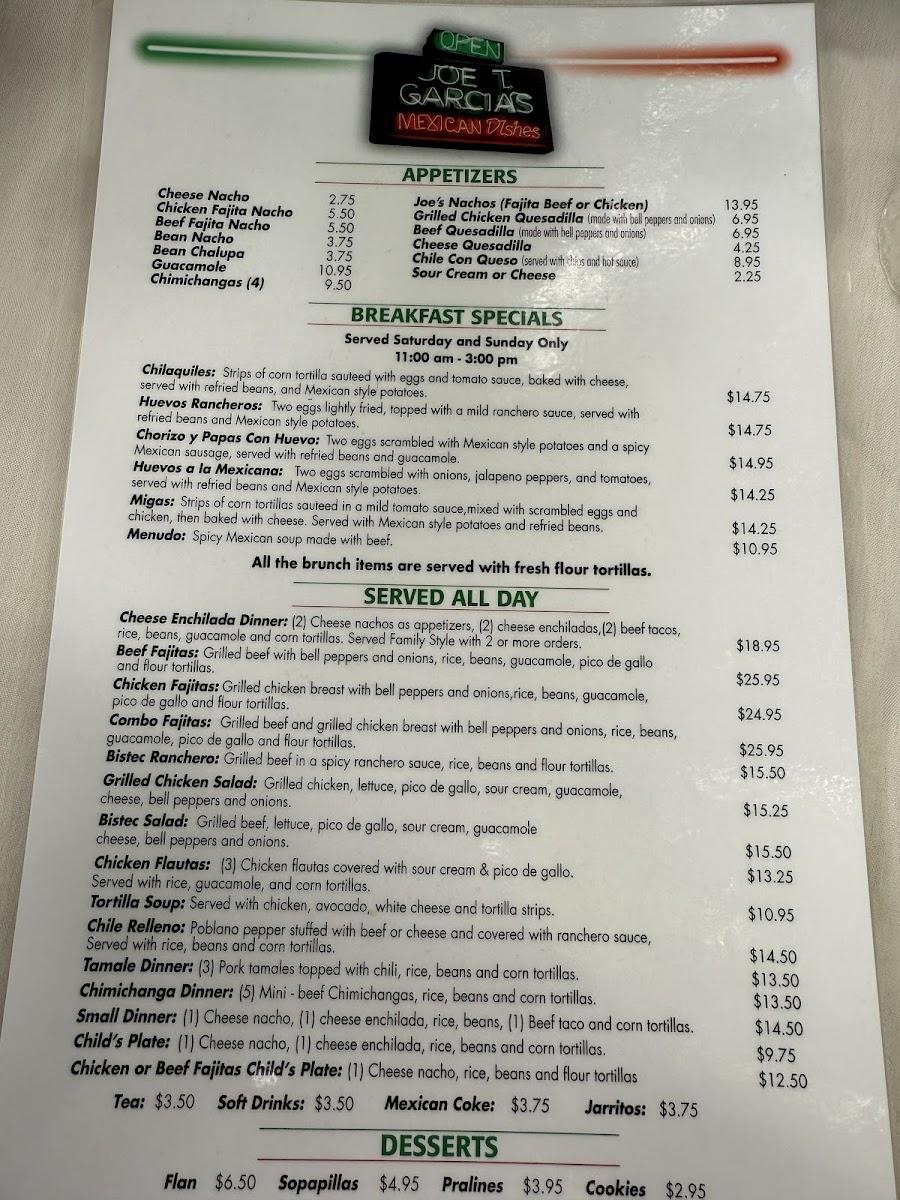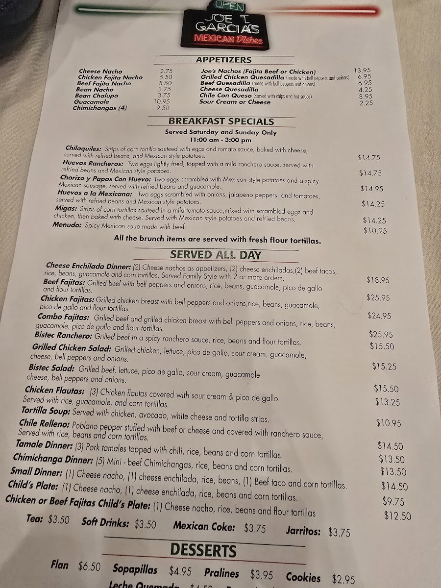 Joe T. Garcia's Menu