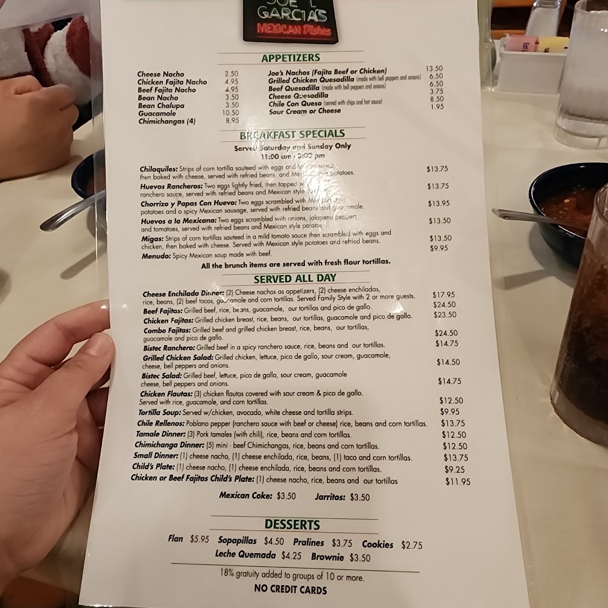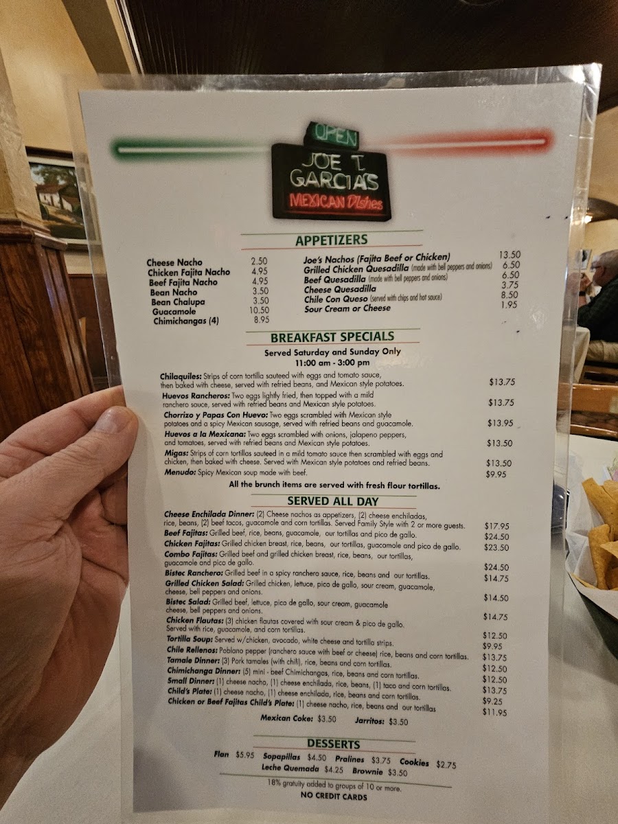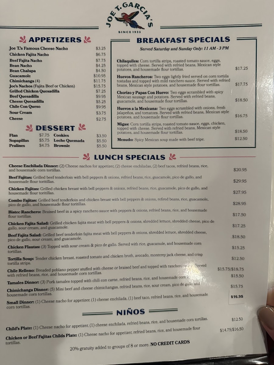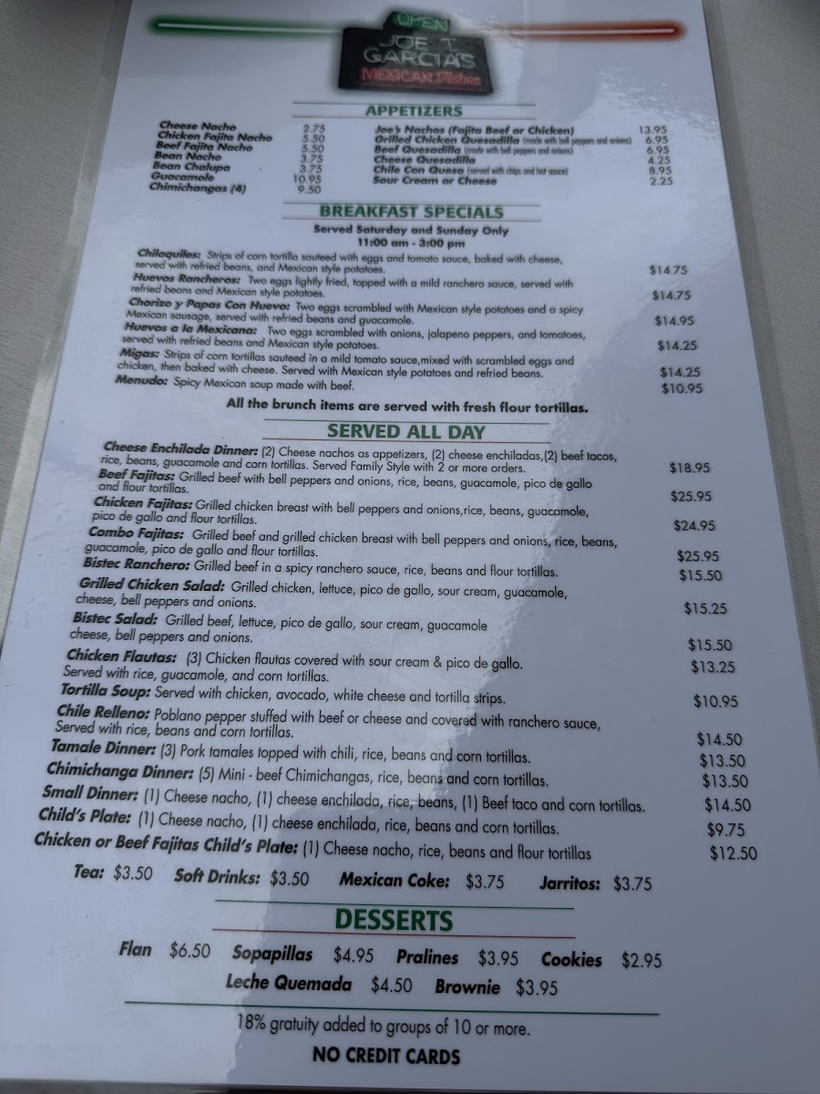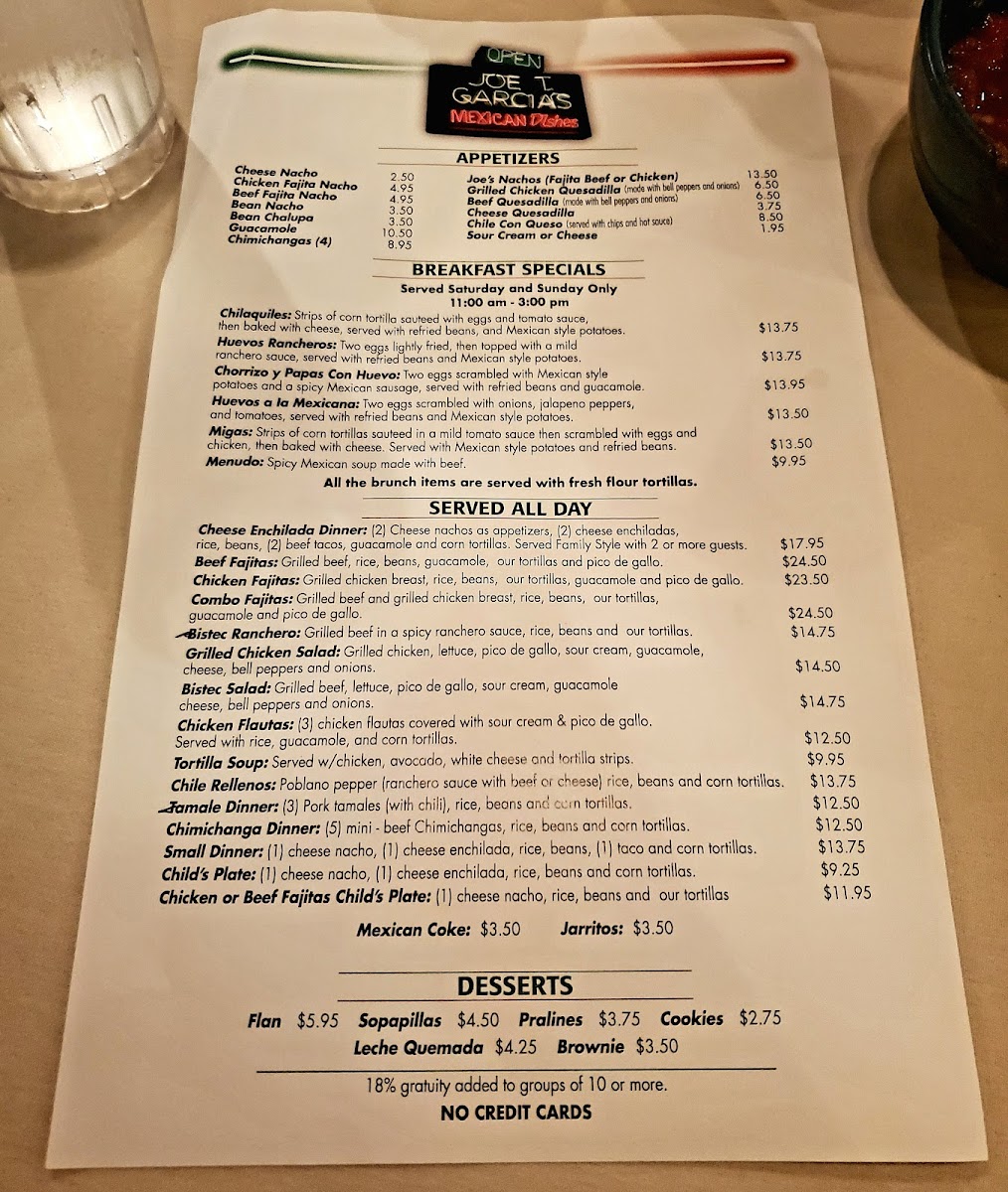 Joe T. Garcia's Menu